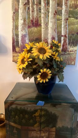 Silk Daisy Arrangement In Blue Vase$15Boynton Beach, FL