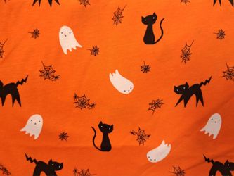 Orange Halloween Print Knit Fabric / Black Cats / Ghosts / Spiderwebs$20Temecula, CA