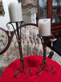Beautiful heavy Wrought Iron Candle holders With 3 hanging Crystals 16 and 12 inches tall.$15Houston, TX