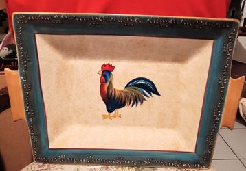 Beautiful Ceramic Rooster tray 19 X 13 Inches with Handales$30Houston, TX