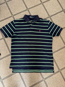 Polo Ralph Lauren Navy Blue Green Stripe Polo Shirt Mens LARGE Pink Pony Logo$20Providence, RI