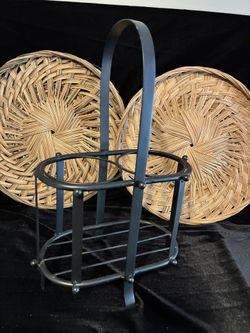 Black Metal Bottle Carrier and 2 Rattan Trays $9Wake Forest, NC