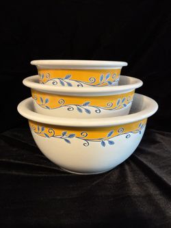 Vintage Set Of Corelle Casa Flora Stoneware Mixing Bowls $30Wake Forest, NC