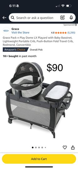 Graco Pack n Play Dome LX Playard with Baby Bassinet, Lightweight Portable Crib, Push-Button Fold Travel Crib, Redmond, Convertible$90Torrance, CA