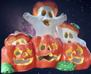VTG Halloween Ceramic Candle Holder Tealight Signed Crafted Ghosts Pumpkins Figures Display Piece $70Hollywood, FL