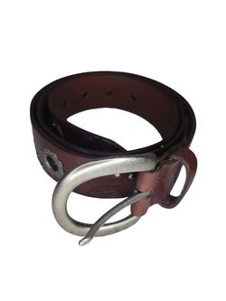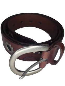 VINTAGE NEW FOSSIL WOMAN BELT BUCKLE FLORAL GROMMETS BROWN CONCHO LARGE