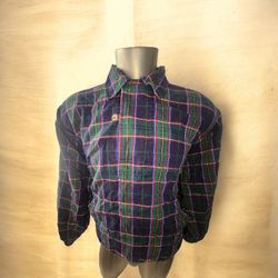 VINTAGE PENDLETON TARTAN GREEN BLUE BOMBER COTTON MAN JACKET SIZE XL