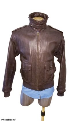 VINTAgE ABERCROMBIE & FITCH MAN BROWN LEATHER BOMBER FLIGHT JACKET SIZE LARGE