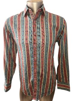 ROBERT GRAHAM MULTI COLORS STRIPES BUTTON DOWN CASUAL SHIRT MAN SZ M