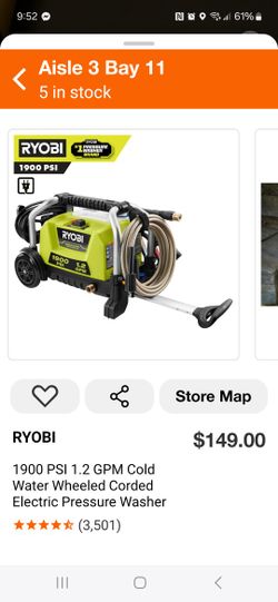 Ryobi 1900 PSI Pressure Washer$100Chandler, AZ