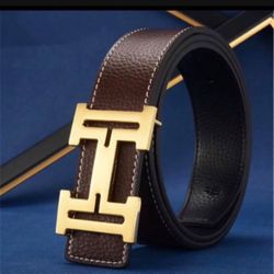 H men belt one size adjustable. Dark Brown/black Gold Buckle $60Los Angeles, CA