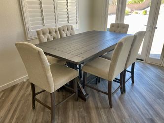 7pc Dining Table Set - Rustic Counter Height Table w/ 6 Beige Dining Chairs$699Ontario, CA