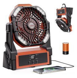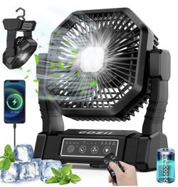 NEW Battery Operated Fan, 20000mAh Rechargeable Camping Fan for Tent with LED Lantern - 3 Colors, 4 Speeds, 4 Timing, Adjustable Head with Hook, Porta$35Chino, CA