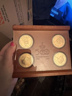 1 Quincentennial Official Caravel Collection, a set of four commemorative medallions celebrating the 500th anniversary of Christopher Columbus$50San Pedro, CA