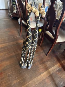 vintage hand-carved wooden giraffe sculptures, likely crafted from Albesia wood in Indonesia$200San Pedro, CA