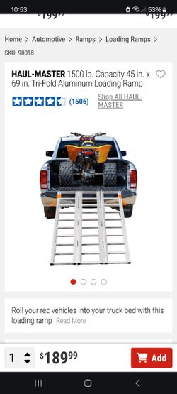HAUL-MASTERÂ 1500 lb. Capacity 45 in. x 69 in. Tri-Fold Aluminum Loading Ramp