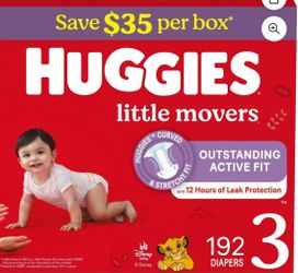 Huggies little movers #3 192 diapers$40Montebello, CA