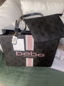 NWT Bebe Black Tote with Pink Stripes with Matching Wristlet Pouch 16 W x 13 H$50Fontana, CA