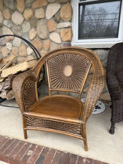 Vintage Coastal Hollywood Regency Woven Rattan Spider Web Lounge Chair ONE CHAIR$150Paramus, NJ