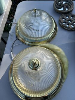Ceiling Lamp Round Modern Ribbed Glass Polished Brass Base $25Atwater, CA