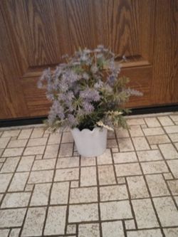 Decorative Artificial Purple Flowers In White Glass Vase ,16 Inches Tall With Flowers $5Dearborn Heights, MI