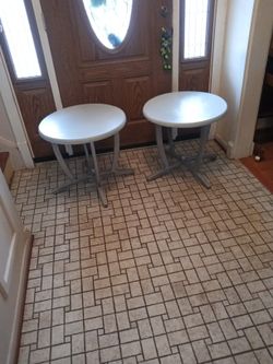 Set Of Outdoor Patio End tables Light Grey Wood Top With Metal Frame $19Dearborn Heights, MI
