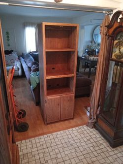 Oak Finish Wood Shelf With Storage/24 X 17 X 72 Inches $20Dearborn Heights, MI