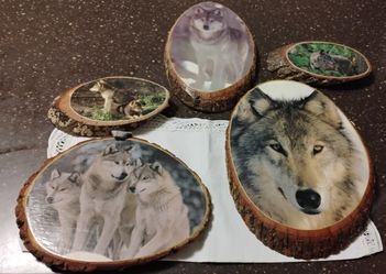 GREY TIMBER WOLF PHOTOS ON FIVE TREE SLICES$35Boynton Beach, FL