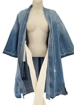 Sandrine Rose Jacket Open Denim Kimono New With Tags Size M Raw Hem Inside Tie$95Mustang Ridge, TX
