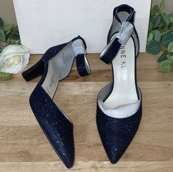ANNE KLEIN Womens Navy Dorsay Glitter Nell Pointed Toe Block Heel Pumps 10 M$50Mustang Ridge, TX