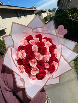 50 Pink And Red Rose Bouquet $140Anaheim, CA