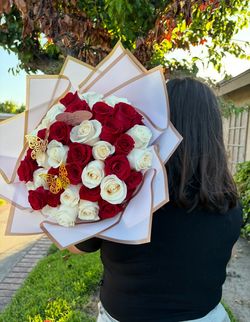 50 Red And White Rose Bouquet $165Anaheim, CA
