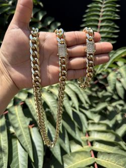 Cadena Y Esclava Cubana Con Zirconia De Oro Laminado$100Los Angeles, CA