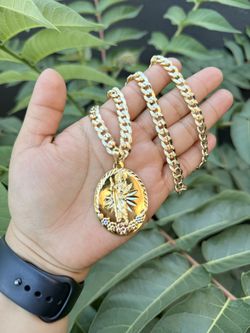 Dije Doble Vista San Judas Tadeo/Virgen De Guadalupe De Oro Laminado$30Hazard, CA