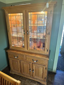 Beautiful Solid Oak China Hutch with Leaded Glass & Lighting – Excellent Condition $425(OBO)$425Los Angeles, CA