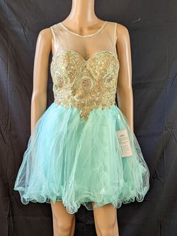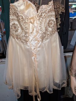 Champagne Short Dress With Gold Applique With Tull Skirt $60Stockton, CA