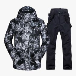 Mens Ski Jacket And Pants Set Ski Suit Winter Waterproof Windproof Hooded Snow Coat 2 Pieces Snowboarding Snowsuits Black+Black-2XL $100Peoria, AZ