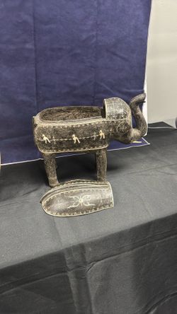 Large Indian Wood Carved Elephant – Early 1900s Handcrafted Decorative Sculpture with Painted Motifs – For Sale A majestic example of early 20th-ce$1,800Santa Ana, CA