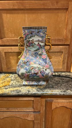 Antique Famille Rose Porcelain Vase With Figural & Floral Decor, Qing Dynasty Style $500Riverside, CA