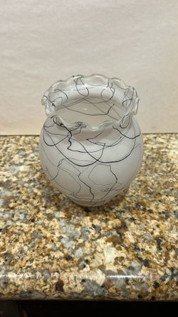 Vintage Frosted Glass Vase With Abstract Black Swirl Patterns$20Riverside, CA