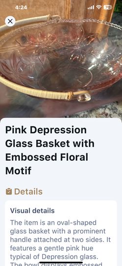 Pink Depression Era Glass Basket With Daisy Motifs $100Moreno Valley, CA
