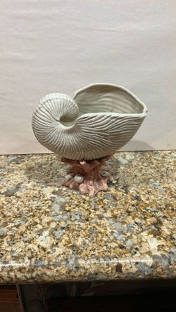 Antique British Nautilus Shell Form Ceramic Vase With Coral Base, Shell-Like Textured Surface $70Riverside, CA