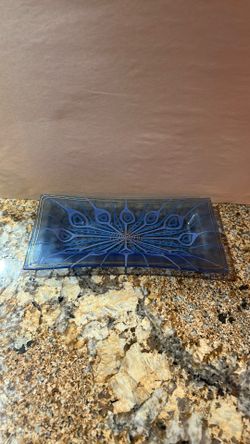 Rectangular Glass Tray With Art Deco Peacock Feather Pattern $30Riverside, CA