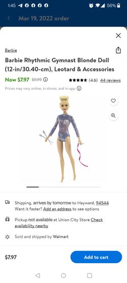 Barbie Rhythmic Gymnast Blonde Doll (12-in/30.40-cm), Leotard & Accessories$4Hayward, CA