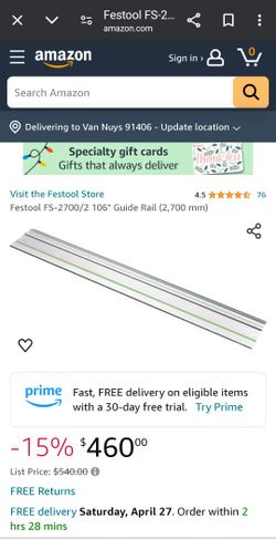 Festool FS-2700/2 106" Aluminum Track Saw Guide Rail$375Santa Clarita, CA