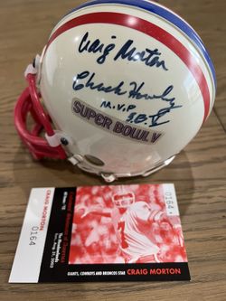 Super Bowl 5 Mini Helmet Signed By Johnny Unitas Craig Morton, MVP Chuck Howley with attached COA holograms. $160Phoenix, AZ