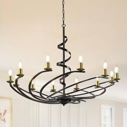 12-Light Chandelier Black Gold Adjustable Fixture Hanging Pendant Living Room Dining Room Candelabro$120Hollywood, FL