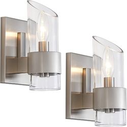 2 Wall Light Fixtures Vanity Scones HARDWIRED Silver Brushed Nickel Bathroom $65Hollywood, FL