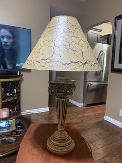 Elegant Suade Shade Lamp Worth Beautiful Crackle Base and elegant Topper $75San Antonio, TX