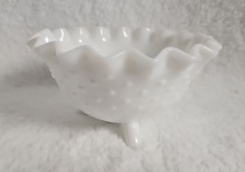 Vintage Milk Glass Hobnail Tri-Footed Candy Dish Compote Bowl Scallop Edge $10Meyersdale, PA